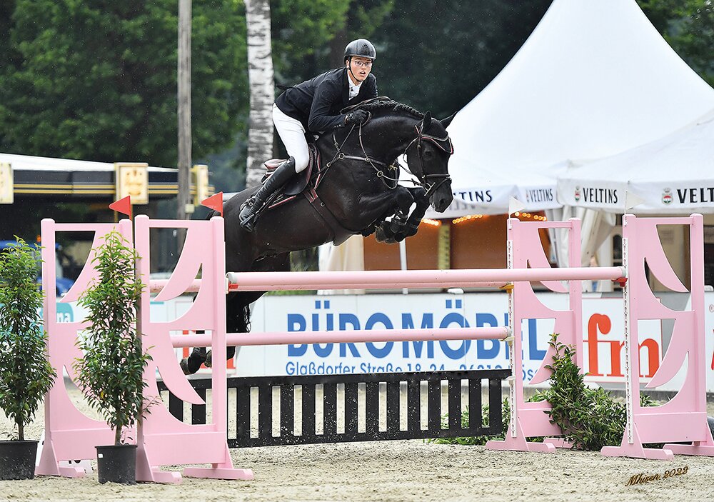 Im Springen der Mittlerem Tour am Donnerstag platzieren sich Caiphirinha von Clintissimo und Mathis Schwentker sowie unser Deckhengst Comme Prévu und Ilena Kilian.