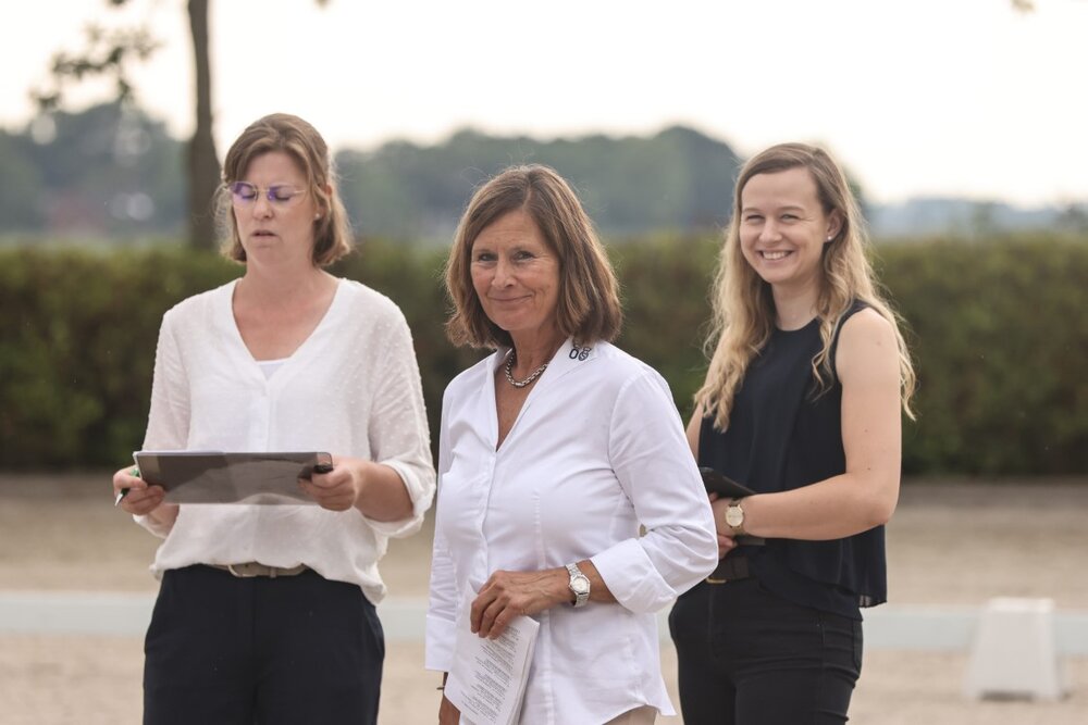 Am Nachmittag ging es erfreulich weiter mit dem Oldenburger Dressurnachwuchs. Lediglich ein kurzer Regenschauer kam in Lemwerder herunter, und das angekündigte Gewitter zog glücklicherweise an uns vorbei. Auch bei den OL-Fohlen konnten 4 Fohlen mit der Elitefohlen-Auszeichnung glänzen und 31 wurden prämiert. Zwei Fohlen wurden zusätzlich zur Auktion eingeladen.