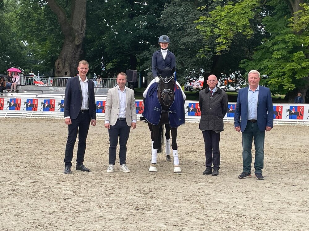 Jolina Marie Willms siegte mit dem Familienpferd Venedig W von For Dance aus der Venice von Detroit - Rohdiamant in der Qualifikation „Preis der Öffentlichen“ Talentförderung Dressurreiter der Klasse L Trense* in Rastede. Mit diesem Top-Ergebnis darf sie am Sonntag das Finale reiten. Wir drücken alle Daumen! Die siebenjährige Stute stammt aus der Zucht von Opa Bodo Willms.