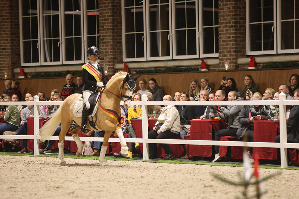 Ein weiterer Höhepunkt war der Auftritt von For Dance, der unter Ninja Sosath auf Grand-Prix-Niveau beeindruckte. Besonders emotional war auch die Vorstellung von Vivaldos, der nun von der 16-jährigen Juniorin Jannie-Lizara Brüning geritten wird.