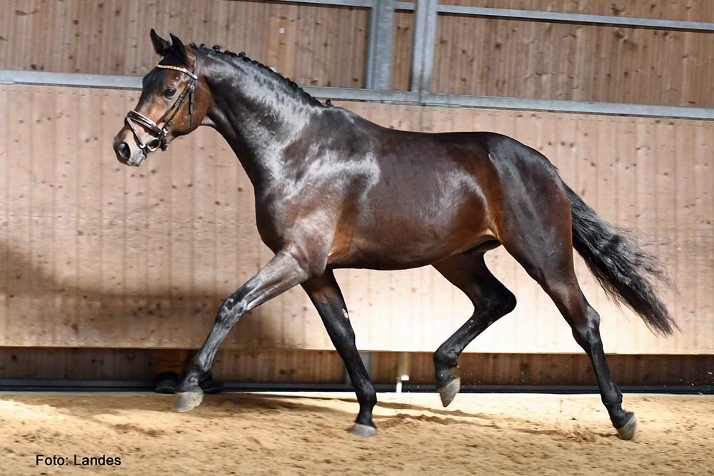 Außerdem zeigte sich die letztjährige Freilaufchampionesse Feenzauber, ebenfalls von For Dance aus einer Grafenstolz Mutter, erfolgreich in einer Reitpferdeprüfung. Mit der Wertnote 8,1 wurde die Runde unter der Besitzerin Patricia Kornes belohnt und damit dem Bronzerang. Für den Galopp gab es die Traumnote 9,0. Sie stammt aus dem Stall der Zuchtgemeinschaft Müller-Sterzenbach.