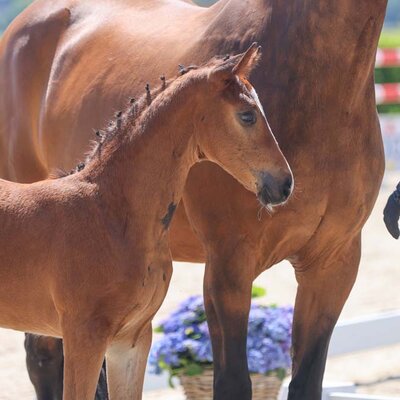 Gerd Sosath was very pleased that he was able to purchase this promising youngster at auction: "This young stallion impressed me from the very first moment on the triangle ring. Equipped with outstanding basic gaits and an ease of movement, he presented himself confidently but at the same time very charmingly in all his performances. A stallion who immediately casts a spell over you. On his dam's side, he brings successful jumping genetics in addition to proven dressage blood."